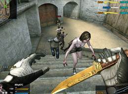 刀光剑影是一种团队进攻休闲娱乐模式,玩家通过使用近战武器不断击杀“感染者”和玩家获得积分,击杀玩家不但能获得更高的积分,也能阻止敌方玩家得分。在规定时间内,击杀“感染者”和敌方玩家都会得到胜利积分。在该模式中,玩家不仅可以体验到近距离虐杀“感染者”的快感,又不缺乏玩家间近距离对抗。同时,也能通过与“感染者”和玩家对抗,慢慢提升自身走位修为和地图的理解。