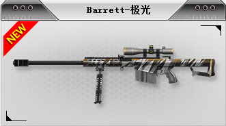 道具描述:可成长的Barrett狙击枪第一阶,可消耗战功及钻石进行升级,成为更强的“Barrett-极光”。