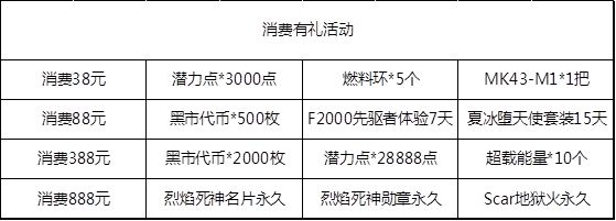 小编很高兴在6月即将到来的第一周跟各位战友相聚,同时小编给我的战友们带来了“消费送好礼,永久武器永相随”活动,这次不仅仅有黑市代币、潜力点还有烈焰死神名片、烈焰死神勋章永久使用,当然还有更值得期待的道具Scar-地狱火(永久)哦。