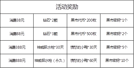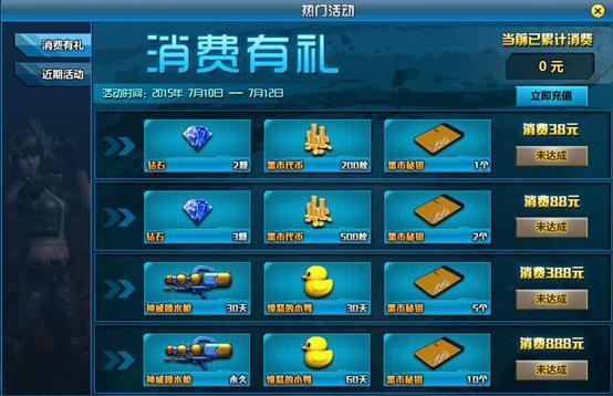 炎炎夏日来袭,伴随着清凉一夏系列活动开启,小编给各位战友带来7月首次消费活动,送钻石、送黑市代币、送黑市密钥还有神威飙水枪永久使用,让这个夏天不在炙热。小编与各位战友一起畅(shi)爽(shen)整个夏天。