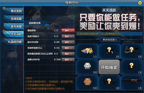 1. 完成活跃度任务,可获得一次抽奖机会。