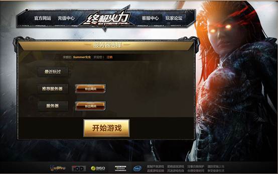 2. 进入360《终极火力》对战平台后,选择“服务器”-“开始游戏”。