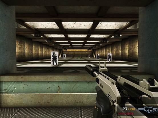 功能描述: 试枪房是可自由进入的武器测试场,玩家可携带自己的武器或在商城点击“试用”按钮进入试枪房,试枪房会定时在不同的距离刷新等同于玩家防御的标靶供测试武器性能。