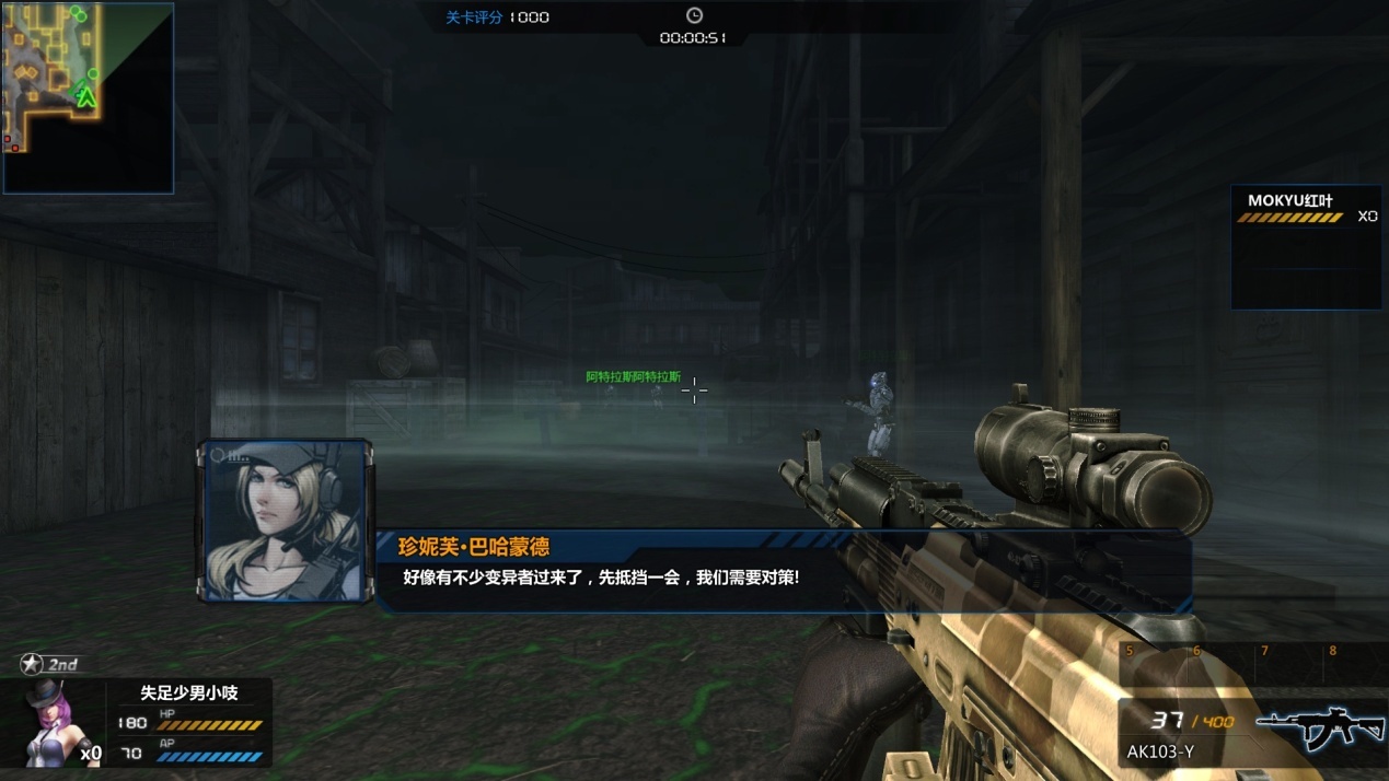 小镇四周充满了瘴气和病毒,玩家和阿特拉斯(友军)协助下赶到了安全区内(白色的圈内),在安全区内抵御一波又一波的僵尸,最终遭遇到狂怒感染者(外形类似猩猩),会普通攻击(用拳头砸地板),和冲刺攻击,玩家被冲撞到后会被击飞并短暂失去控制能力。