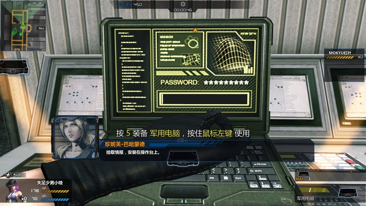 来到机械工厂消灭守卫后获得军用电脑,在操作台安装好军用电脑后利用军用电脑将机械工厂内的信息传回到总部进行分析!在电脑运行的过程中会不断涌出敌军攻击玩家,也有敌人专门制造的工程兵来对电脑进行拆除。电脑传输进度满后,玩家即可前往机械工厂入口处离开,如电脑被拆除或玩家死亡则任务失败.